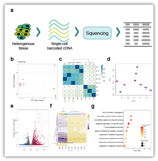 ● For single sample: quality control, filtering, highly differential gene selection, PCA linear dimensionality reduction, cell clustering, marker genes analysis, cell population identification